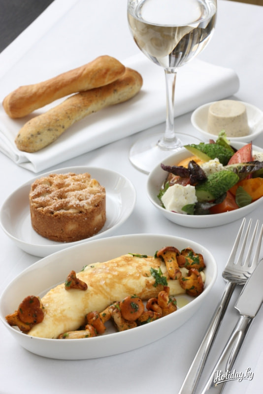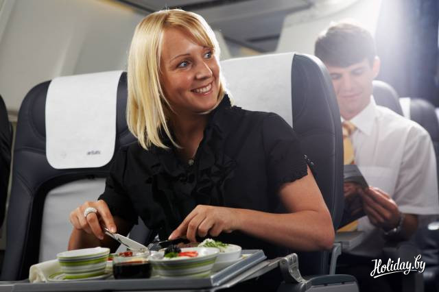 Особое внимание уделено бортовому меню. Пассажиры бизнес класса наслаждаются бесплатным питанием, которое готовится из самых свежих сезонных продуктов, сочетая лучшие блюда латвийской и интернациональной кухни. Пассажиры эконом класса могут купить питание из бортового меню или заказать его заранее, сделав выбор из более, чем 70 блюд на сайте airBalticmeal.com.