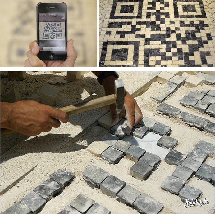 Совет по туризму Португалии творчески подошел к привлечению туристов при помощи двухмерного штрих- кода. Идея состояла в том, чтобы объединить историю и современность. Так, камнями, которым более 500 лет, выложили QR-код.