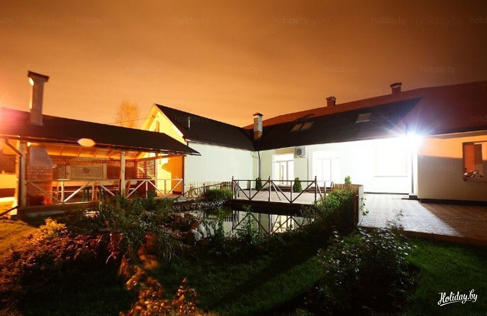 Отдых в современном коттедже, индивидуальный подход к клиентам и качественное обслуживание. На ухоженной территории усадьбы беседка, мангал, небольшой пруд. Есть возможность арендовать сауну, а также организовать питание (блюда белорусской кухни).