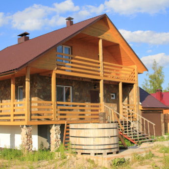 Уютный двухэтажный деревянный дом в аренду в экологически чистом районе Беларуси на берегу красивого озера Селява. С комфортом разместит компании до 8 человек. Отличный вариант хорошо провести осенний вечер в компании друзей за дружеской беседой перед камином. На территории усадьбы есть современная русская баня на дровах и беседка с мангалом. Стоимость аренды усадьбы – 20 у.е. в среднем за человека в стуки. Подробное описание и фотографии усадьбы >>>