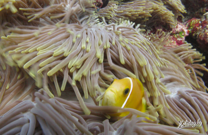 Природные условия на Мальдивах делают эти острова чрезвычайно прекрасным местом для подводных погружений. Коралловые острова – атоллы, окружены большими лагунами с прозрачной водой. Здесь водится более 900 различных видов рифовых рыб. Какие только удивительные рыбы не встречаются здесь: рыбы-бабочки, рыбы-львы, рыбы-клоуны, рыбы-ангелы и даже рыбы-императоры! Вероятность встретить крупную акулу при подводном погружении очень невелика из-за небольшой глубины лагун.