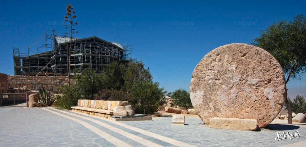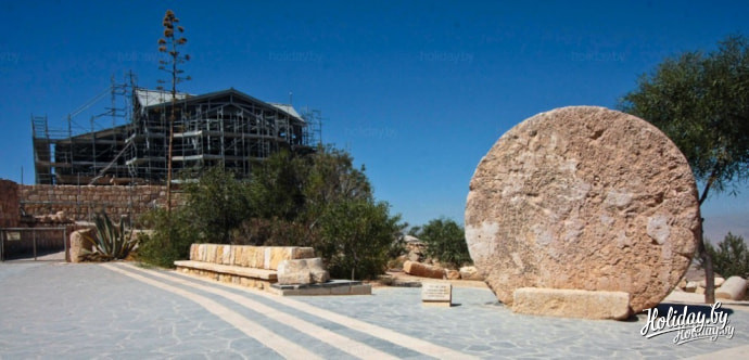 Следующая остановка - гора Нево (или Небо, как иногда пишут в путеводителях, но правильнее все же Нево). Именно с вершины этой горы пророк Моисей увидел землю обетованную. Именно в окрестностях горы (или на самой горе, дословно точно никто не знает) Моисей нашел свое последнее пристанище. Тут же была возведена в 4 веке церковь в честь Моисея, а в настоящее время идет ее полная реставрация. Суть заключается в том, что церковь накроют стеклянным саркофагом. Интересно и то, что вся гора находится под защитой ордена францисканцев и по сути им принадлежит.