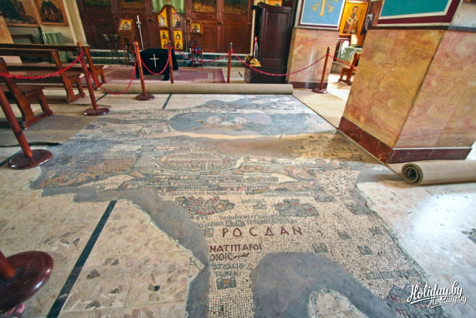 Когда город восстанавливали, обнаружили в завалах знаменитую Карту Палестины - мозаичное панно на полу православной церкви. Удалось восстановить лишь часть этой карты. Это самая древняя карта Святой Земли, она поражает своей детальностью и, если можно так сказать, качеством работы. Созданная византийскими мастерами еще в 6 веке нашей эры и поныне находится в Георгиевском монастыре в Иордании.