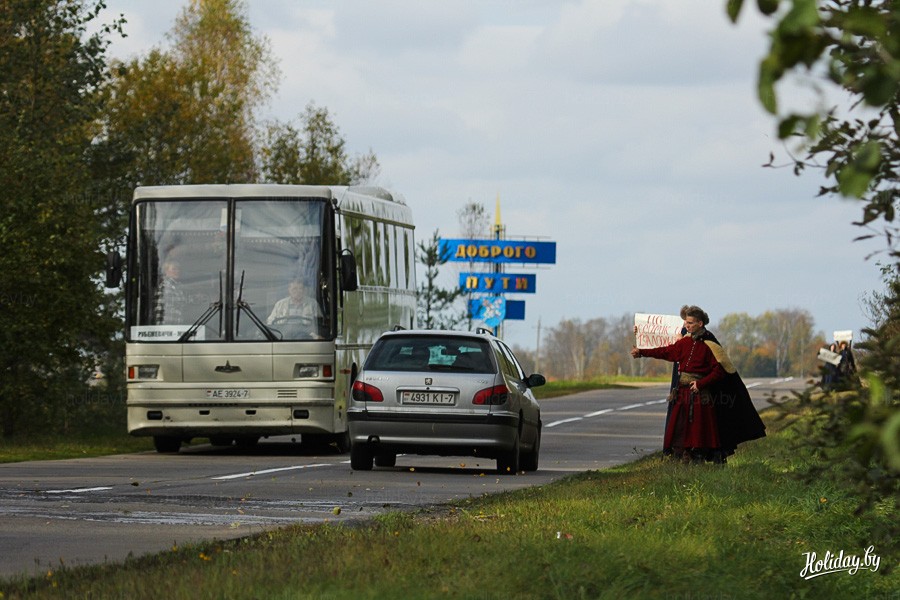 Сразу без прелюдий. Всем же интересно :) Неделю назад, в первой части "шляхетского автостопа", мы оставили группку белорусской средневековой знати на трассе где-то на Минщине. Сумеет ли кто-то из них добраться до ВКЛ автостопом? На кого клюнут водители: на мальчиков с мечами и лицами или же на девочек с формами и улыбками? Продолжаем эксперимент "Мастерской впечатлений" и Holiday.by.