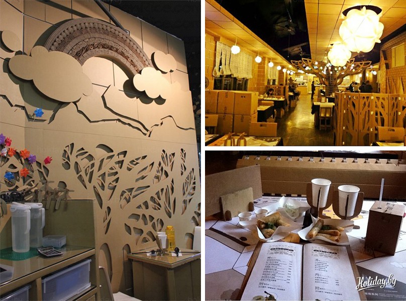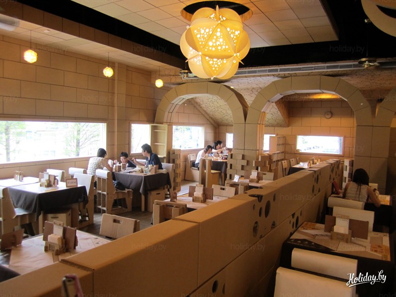 В ресторане тайваньского города Тайчунг абсолютно все сделано из картона: мебель, предметы интерьера, посуда, декорации. При этом, абсолютно все создано из известного с детства материала.