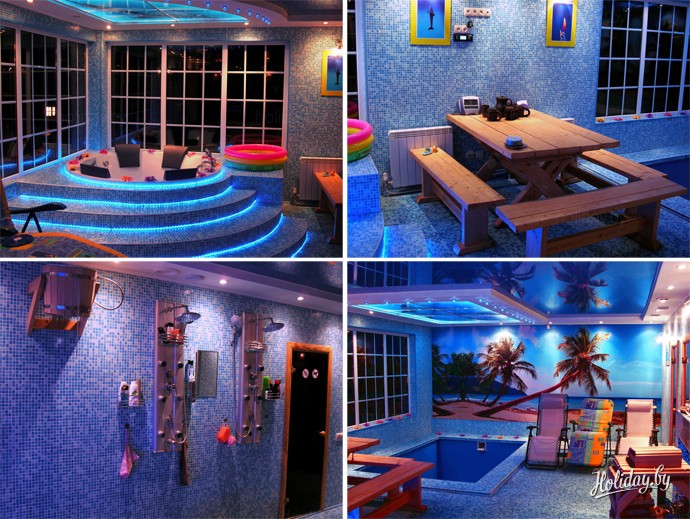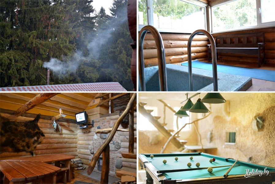 Кроме русской парной, гости могут посетить в банном комплексе финскую и турецкую парную «хамам». Особый шик комплекса – это большие панорамные окна комплекса, которые открывают великолепный вид на ухоженную приусадебную территорию. В зоне отдыха есть камин и зимний сад, - это дарит какое-то особенное чувство уюта и комфорта.