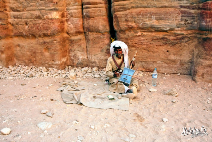 Тут же можно встретить уличных музыкантов, например, вот таких. Старик играет на древнем набатийском инструменте с одной струной. Получается довольно неплохо!