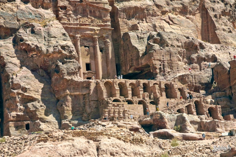 Весь остальной город раскинулся в длину на несколько километров. Тут есть и храмы, высеченные в скале, гробницы, простые дома, если можно так сказать. Поговаривают, что Петру раскопали всего на 15%, остальная же часть города до сих пор не изучена. Ходят слухи о несметном богатстве Петры, ведь город стоял на пересечении древнейших торговых путей и был очень богат. Но сокровища так до сих и не найдены.