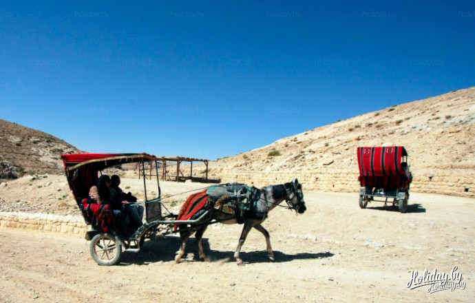 От билетных касс до входа в главное ущелье можно добраться пешком или же вот на таких повозках. Всего 5 минут и вы у цели! Стоимость удовольствия - 30 долларов за всю повозку.