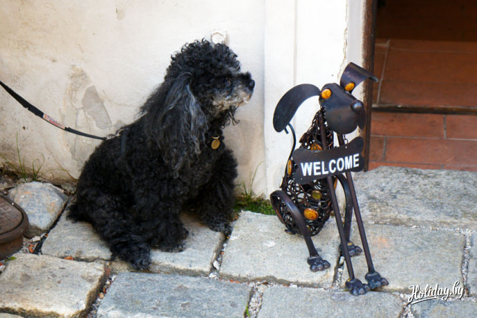 Кто сказал, что только в России по улицам и сегодня медведи ходят? Нет, настоящего медведя, вальяжно прогуливающегося по улицам или у подножия замка, можно увидеть и в Чешском Крумлове!) Следующее фото сделано у входа в замок. Кто найдёт на нём медведя?)