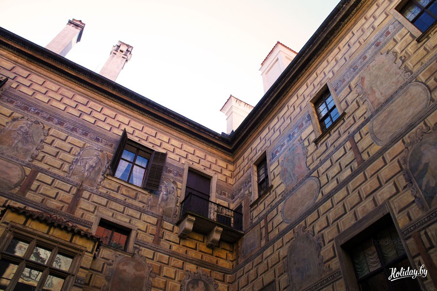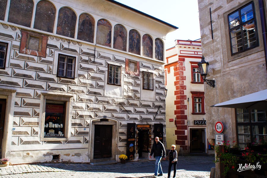 Почти каждый дом в Чешском Крумлове – памятник архитектуры. Вот, например, здание на улице Латран. Художник должен был изобразить стадии взросления человека – становления мужчины. Однако автор так увлёкся, что изобразил все стадии жизни человека – от рождения до старости. Заказчик отказался платить за все десять картин – он ведь заказывал только пять! Художник не растерялся и залил кислотой «ненужные» пять изображений.
