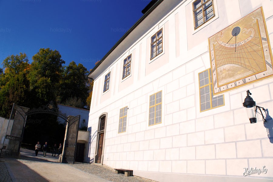 Нельзя не заметить и необычные солнечные часы на одном из замковых зданий:
