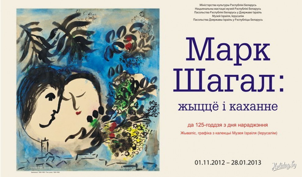 С 1 ноября 2012 года по 28 января 2013 года в Национальном художественном музее Республики Беларусь будет работать выставка «Марк Шагал: жизнь и любовь» из коллекции Музея Израиля (Иерусалим). Выставка организована Музеем Израиля по инициативе и при финансовой поддержке Министерства культуры Республики Беларусь, при поддержке Посольства Республики Беларусь в Государстве Израиль и Посольства Государства Израиль в Республике Беларусь.