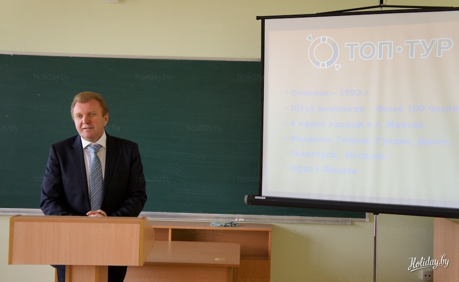 24 октября 2012 года в новеньком здании факультета международных отношений БГУ в рамках «Дня карьеры» состоялась встреча студентов кафедры туризма и представителей туристической отрасли Беларуси. Основная тема встречи – трудоустройство сразу после студенческой скамьи, возможности стажировки и практики во время учёбы. О себе и о том, как можно устроиться на работу или практику, рассказали представители туристических компаний. Среди них: ООО «Топ-Тур», агентство «Малибу тревел», ТЧУП «Солемаре», ОДО «Виаполь», ООО «Тревел», отель «Европа» и туристический портал Holiday.by.
