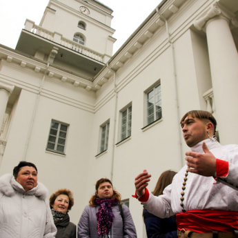 Экскурсовод Евгений Апанасевич приглашает продолжить экскурсию к Минской городской ратуше