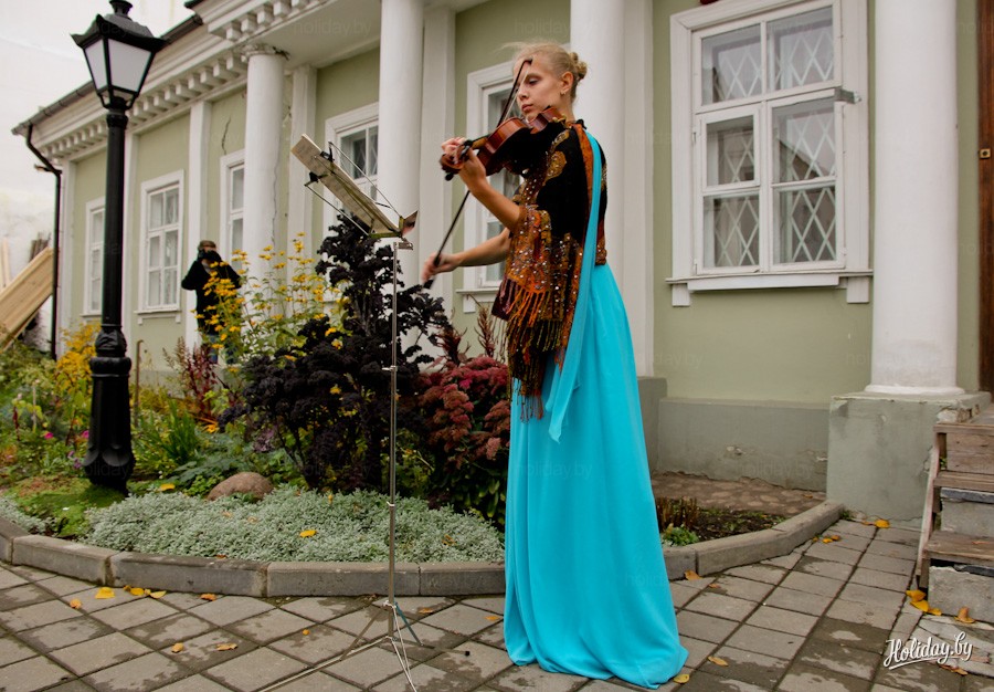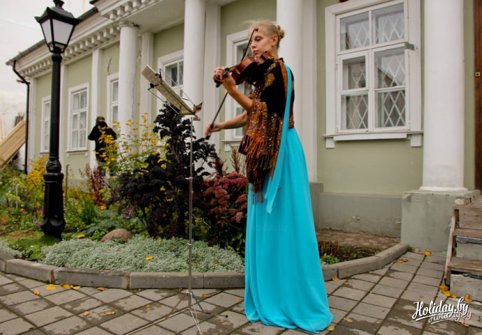 Прямо у входа в усадьбу Ваньковичей девушка-скрипачка исполнила «Полонез» Огинского, который переносит нас в атмосферу уже 19 века.