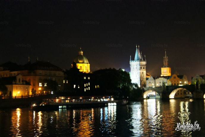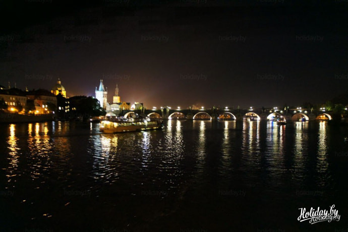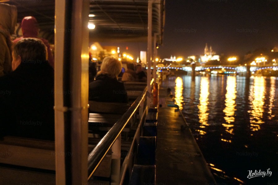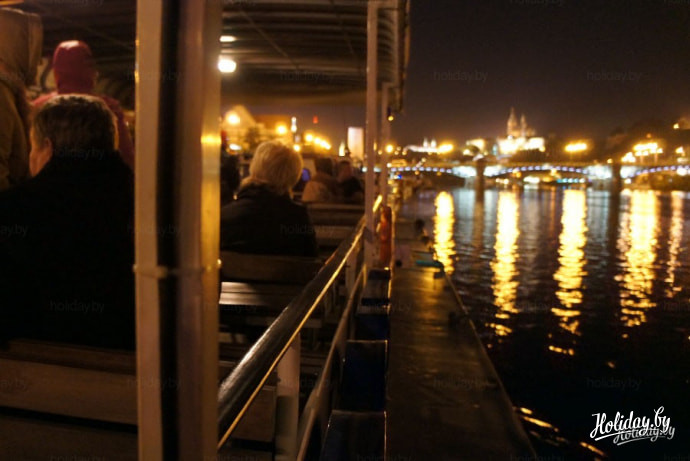 Начнём с ночной прогулки на кораблике. Говорят, что если ты не видел Прагу с воды, ты не видел этого города вовсе. Не совсем согласна, но с воды Прага действительно предстаёт совсем другой. Более сказочно-нереальной что ли)