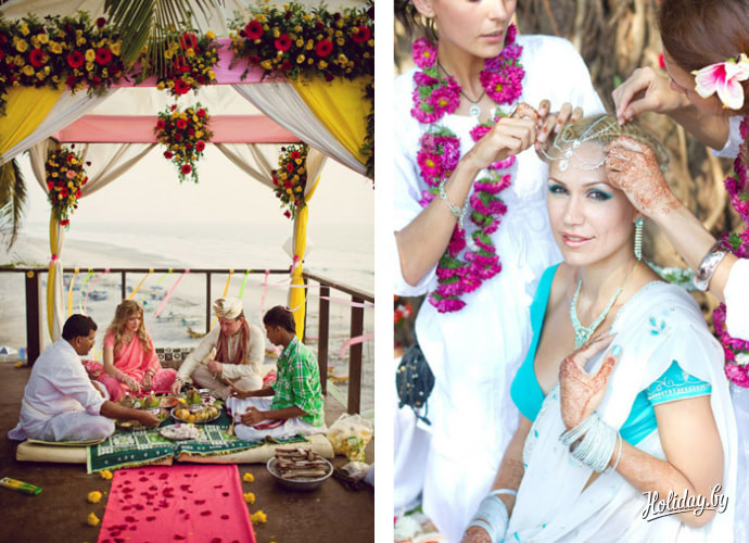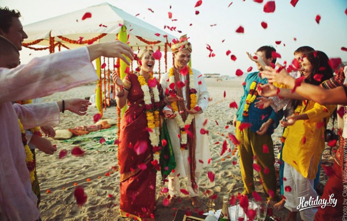 | Свадебная церемония в индийском стиле | $650-1480 | Русский координатор; Свадебный шатер; Индийский брамин; Свадебные ритуалы: 7 шагов, обмен гирляндами, костер, тексты на санкрите и др.; Букет невесты; Лепестки роз; Шампанское и индийские сладости; Свадебный сертификат; Музыкальное сопровождение; Дорожка из живых цветов; Трансфер на кондиционированном авто |