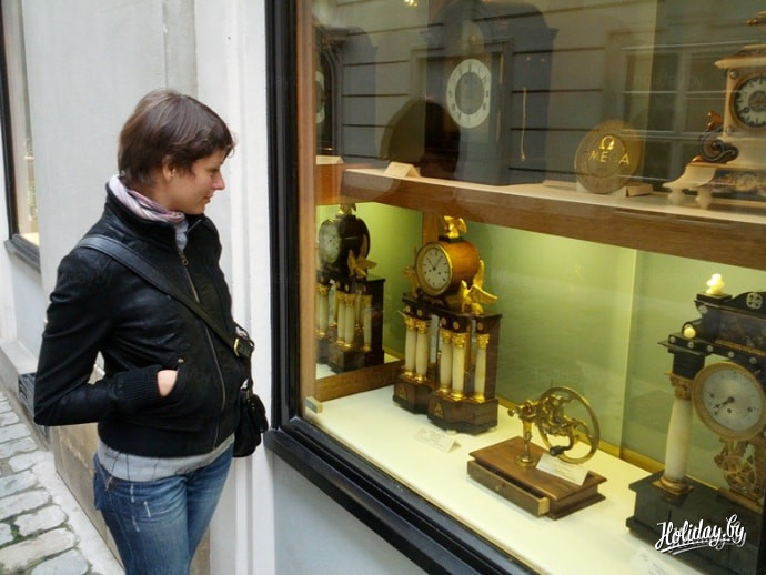 Ведь это просто здорово, гуляя по тихой улочке, где в это время Вы абсолютно одни, наткнуться на витрину закрытого часового магазина с 300-летней историей, при котором работает (!!!) музей часов.