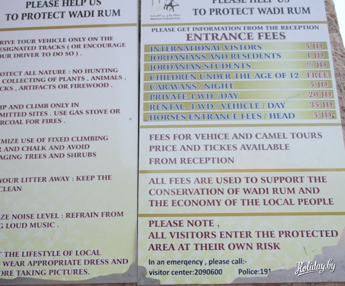 Экскурсия по пустыне Вади-Рам не сильно бьет по карману, в отличие от посещения города Петра, о котором мы писали в прошлый раз. Вход на территорию пустыни стоит 1 динар (1 евро) для местных жителей и 5 динар (5 евро) для туристов. А вот дети до 12 могут гулять по пустыне и вовсе бесплатно.