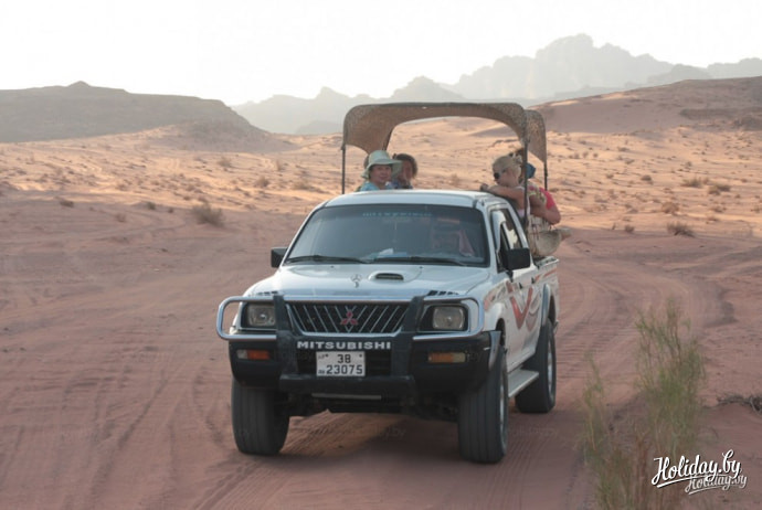 Большинство туристов путешествуют по пустыне на джипах, но можно по желанию заказать себе экскурсию на лошадях или верблюдах. Местные водители настолько суровы, что постоянно устраивают аттракционы для сидящих в кузове туристов: то и дело буксуют, отправляют джип в занос и вообще скачут по песчаным барханам не хуже лошадей.