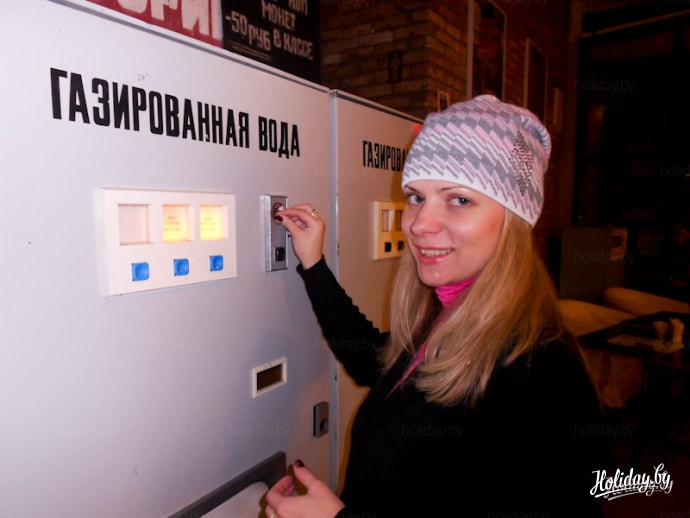 Но лучше вместо кофе вспомнить вкус настоящей газировки из автомата. Он тут тоже есть, даже целых три. Автомат работает от 30 коп. монет, которые можно купить за 50 руб. Предложены сиропы нескольких вкусов: тархун, ситро, апельсин, груша. Мммм... Этот вкус!
