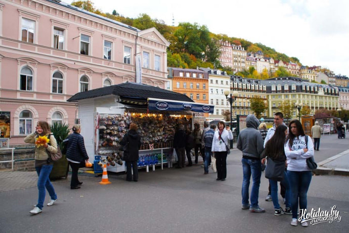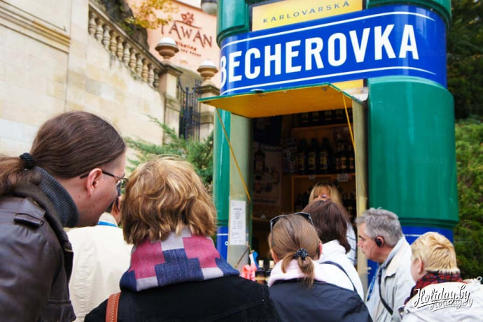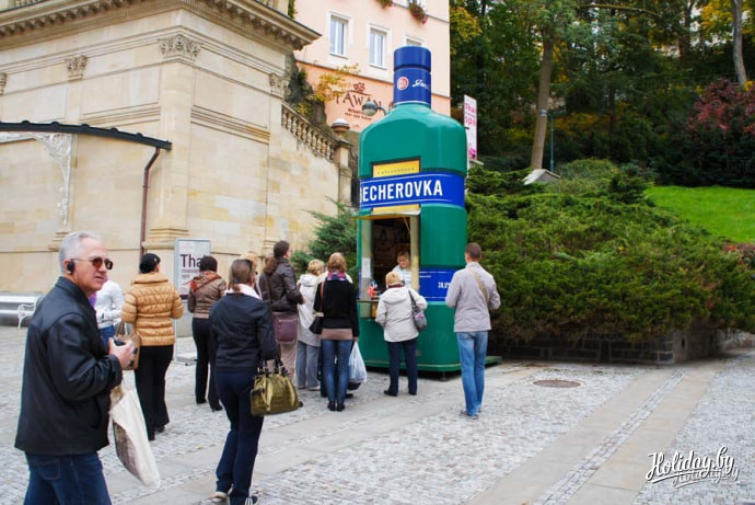Кстати говоря, дешевле чем в Карловых Варах, Вы нигде не купите бехеровку. Поэтому закономерна неиссякаемая очередь туристов к ларьку, торгующему этим чудесным напитком.