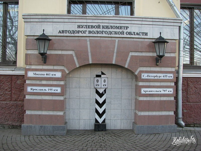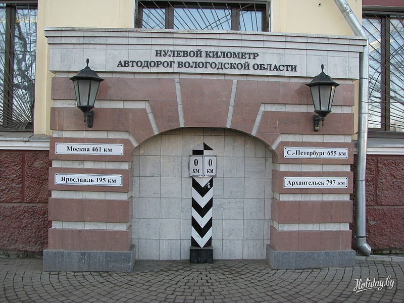 Нулевой километр Вологды встроен прямо в здание. Тут два варианта: авторы решили сэкономить либо на самом деле высчитали географический центр Вологодской области и он попал как раз на это место.