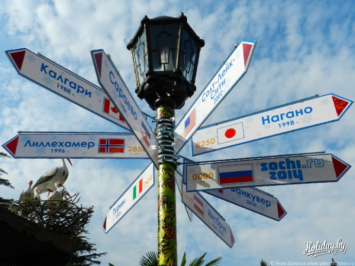 В Сочи пошли ещё дальше и установили Нулевой километр Олимпийский игр. Он показывает расстояние до всех столиц Зимних Олимпийских игр.
