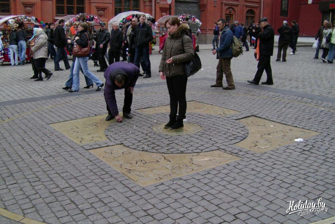 Нулевой километр Москвы ничем особенным не отличается, хотя говорят, что если загадать желание, стоя в центре знака, оно обязательно сбудется.