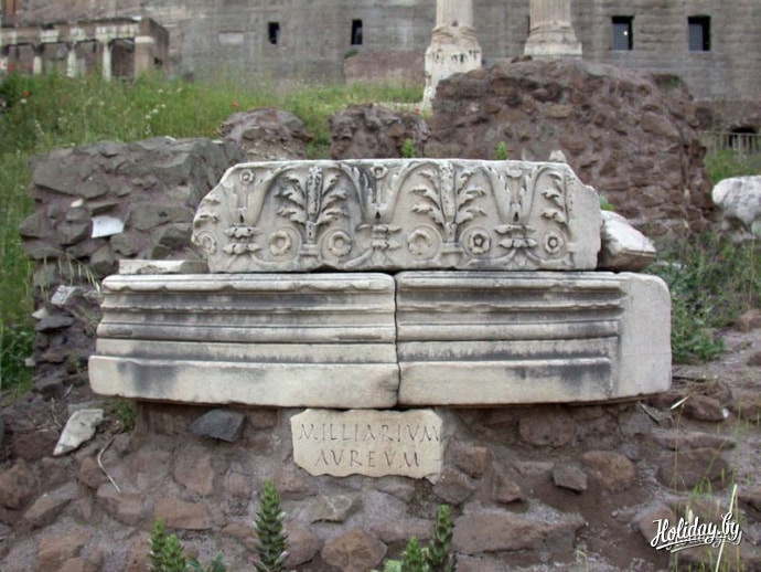 Самый первый Нулевой километр появился ещё в античные времена в Риме. Называли его «Золотой мильный камень» и представлял он собой колонну. Именно от него уходили дороги во все уголки Священной Римской империи. И именно с ним связывают выражение: «Все дороги ведут в Рим». Кое-что от первого Нулевого километра сохранилось и до наших дней.