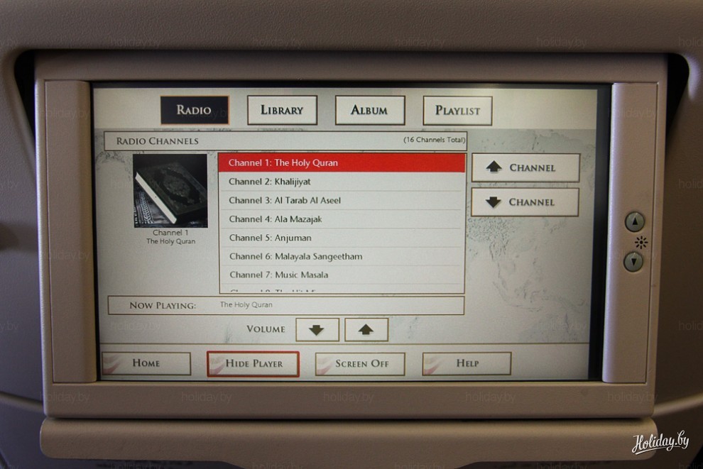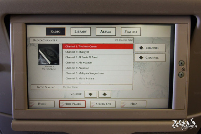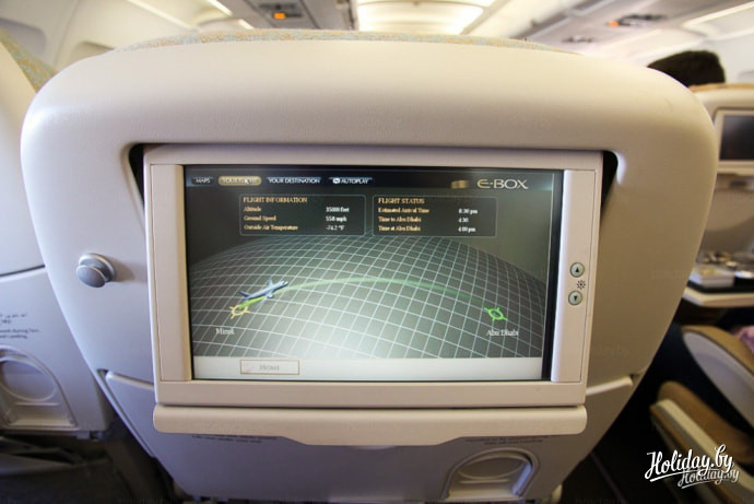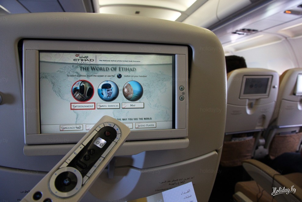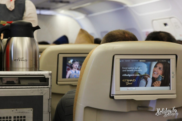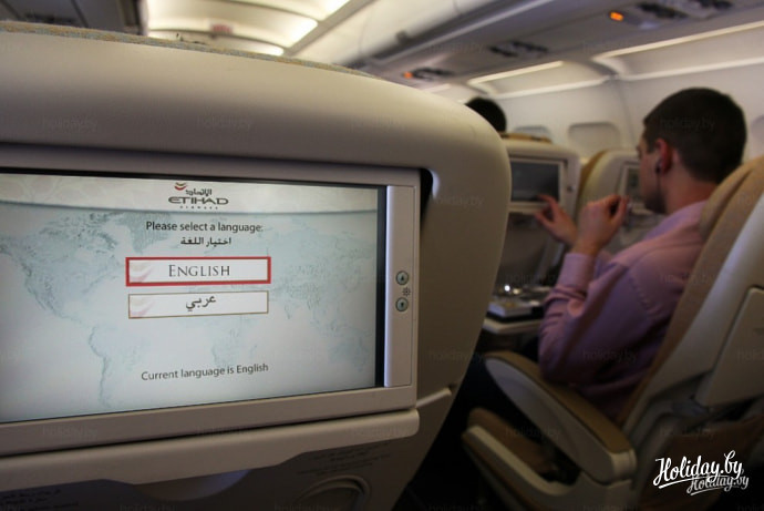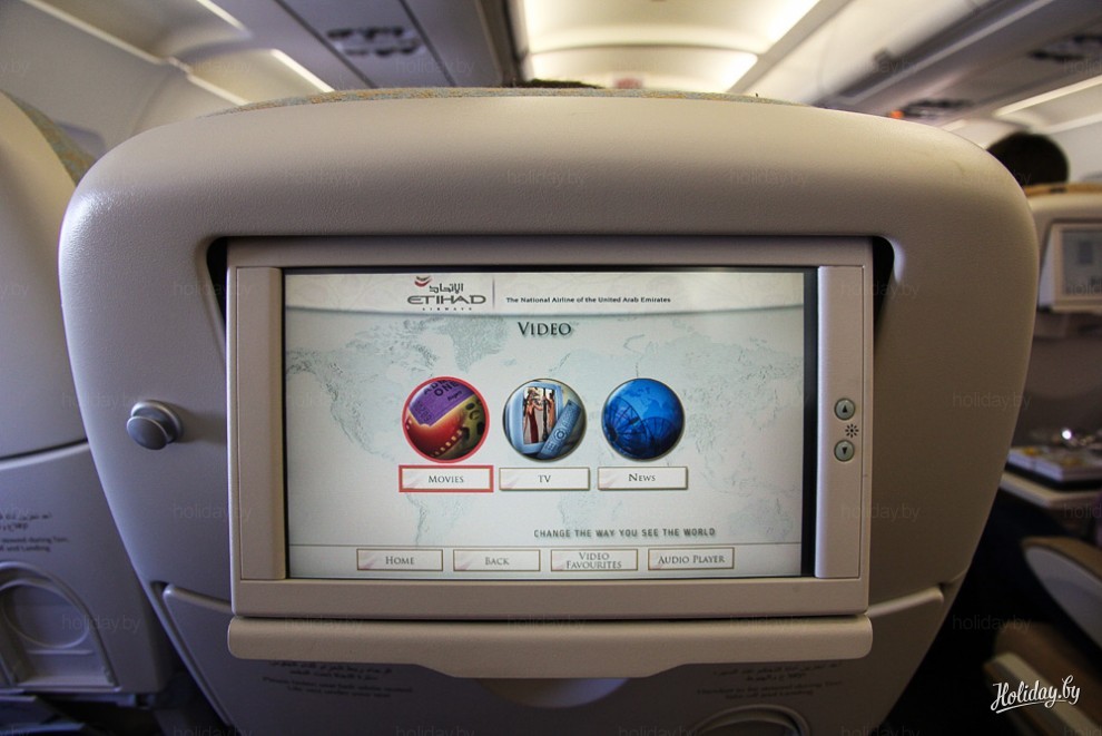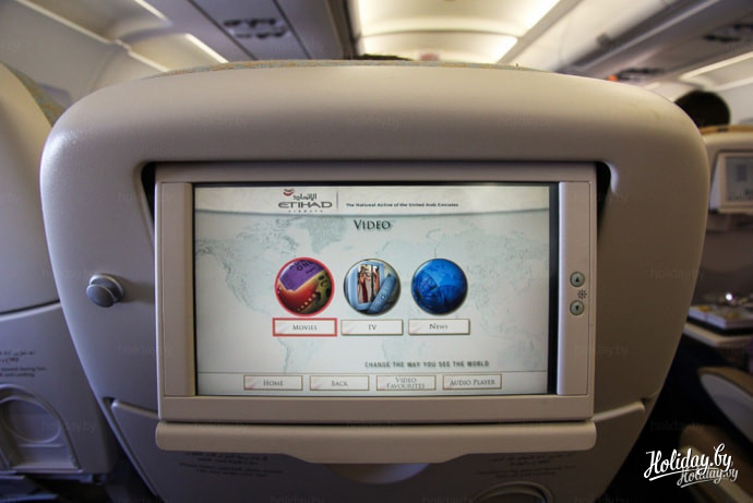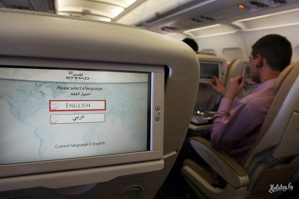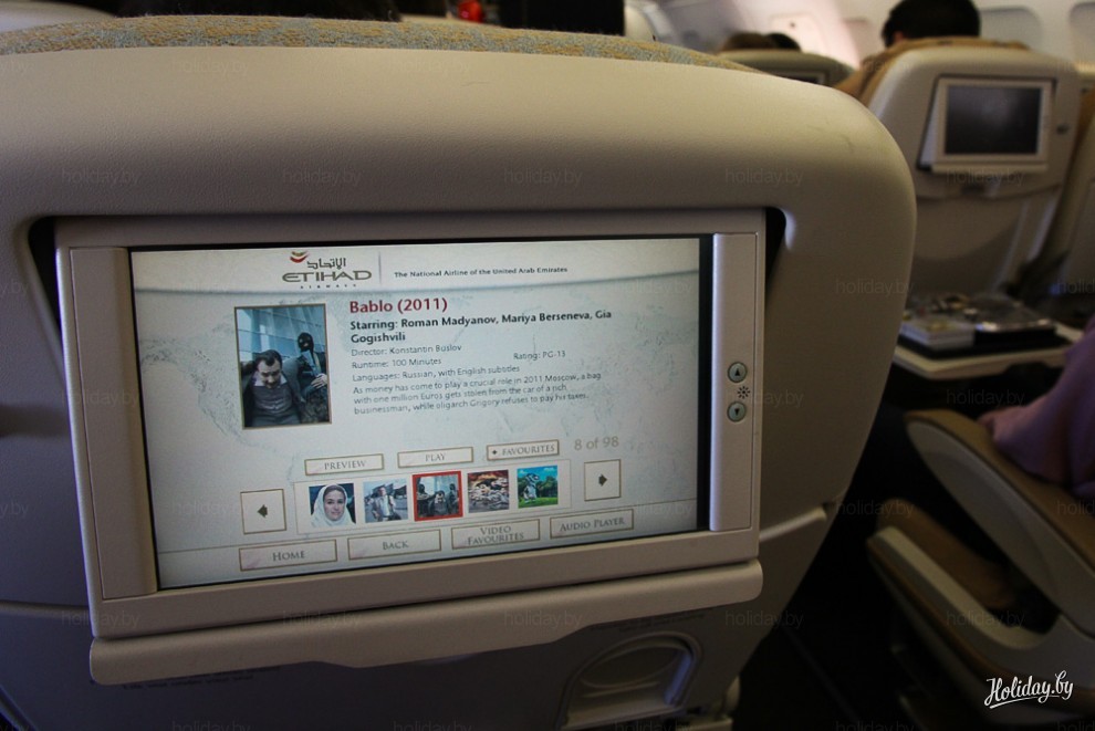 Порядка сотни кинолент доступно для просмотра. То есть пара фильмов может быть полностью просмотрена за перелет до Абу-Даби. Большинство не_русскоязычные (на английском, хинди, арабском, некоторых других европейских языках с английскими субтитрами).