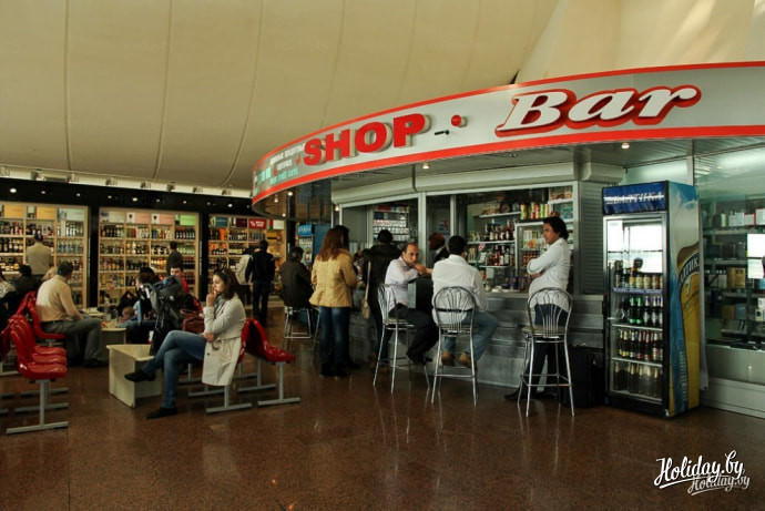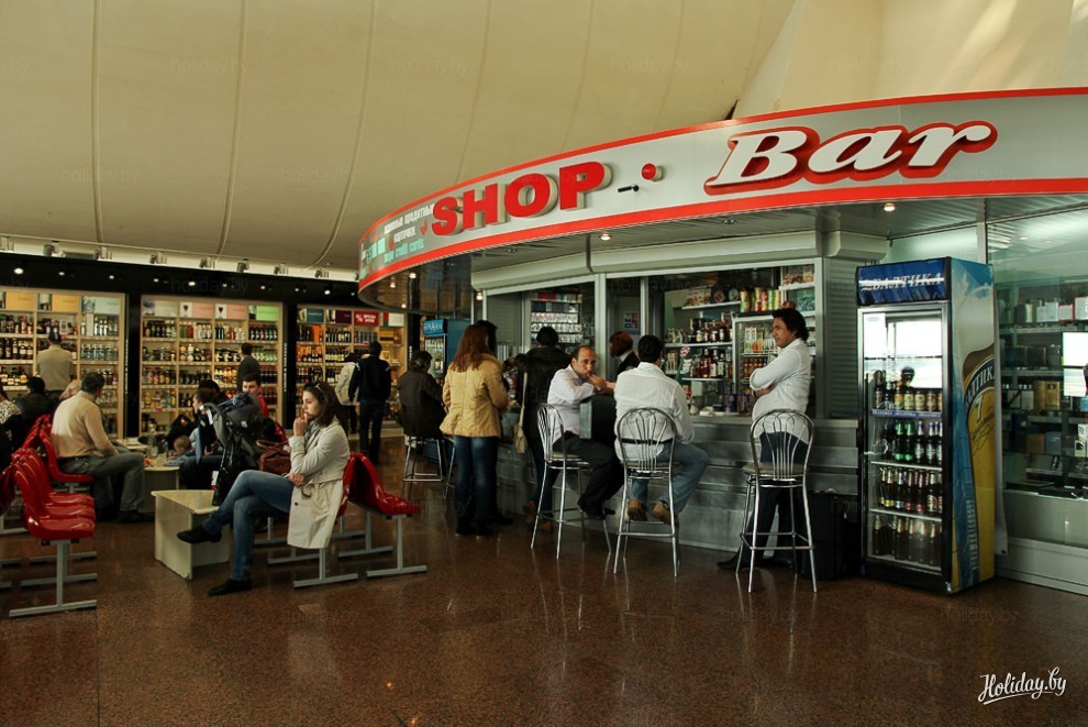 Традиционный good buy shot или чашечка кофе перед посадкой в самолет в аэропорту "Минск".