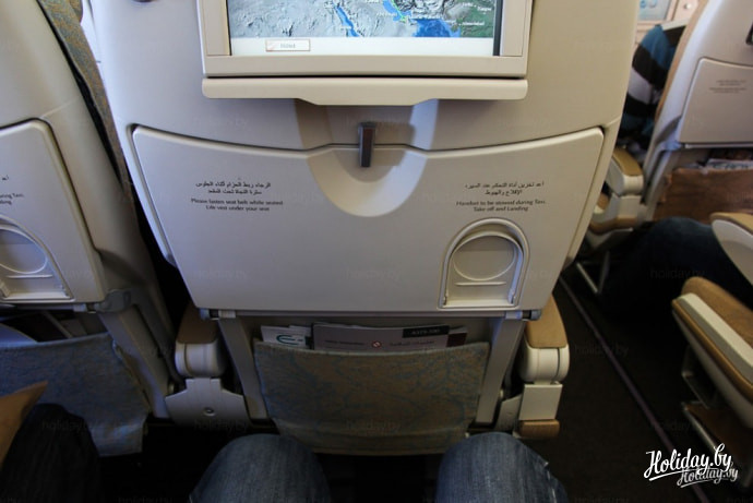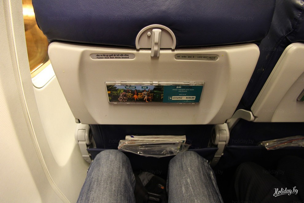 При том, что самолет местных линий старше собратьев Etihad Airways места между креслами также достаточно для размещения (конечно, сравнить с арабским перевозчиком нельзя, но всё же колени не упираются - авт.) В набор входит только пресса на английском языке.