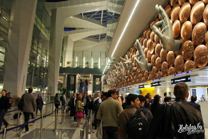 Таким образом, скоротать шестичасовой перелет из Минска есть чем. Впереди - стыковка в Абу-Даби. Самолет прибывает в 20:40 по местному времени. В нашем случае вылет в Дели назначен на 00:55. Во время стыковки в ОАЭ важно понимать, сколько времени у вас между рейсами. Аэропорт в Абу-Даби настолько велик, что переход между терминалами может занять несколько десятков минут (и это быстрым шагом! - авт.). При этом следует помнить о том, что гейты прекращают работу за 20 минут до взлета рейса. И прибавить к этому прохождение паспортного контроля и досмотра. Всё это к тому, чтобы пассажир не попал под влияние очевидной роскоши магазинов и кафе арабского аэропорта и не "завис" в одном из терминалов. Надо отметить большое количество сотрудников аэропорта в Абу-Даби, которые направят вас в нужный терминал. И уже в терминале можно побаловать себя duty free покупками или просто чашечкой кофе в одном из кафе.