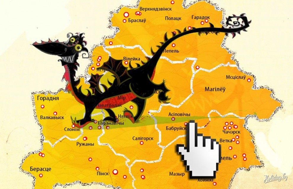 Каб вам не гартаць другі раз усе сем матэрыялаў серыі, давайце каротка прыгадаем, якія “цмачыныя” месцы называў кожны з экспертаў. Нагадваем, што агулам вам трэба абраць 7 з іх. Для лягчэйшай арыентацыі мы склалі для вас інтэрактыўную мапу Беларусі, дзе пазначаныя ўсе гэтыя пункты. Наводзячы курсор на пункты мапы, можна хутка атрымаць інфармацыю, дзе які цмок жыве.