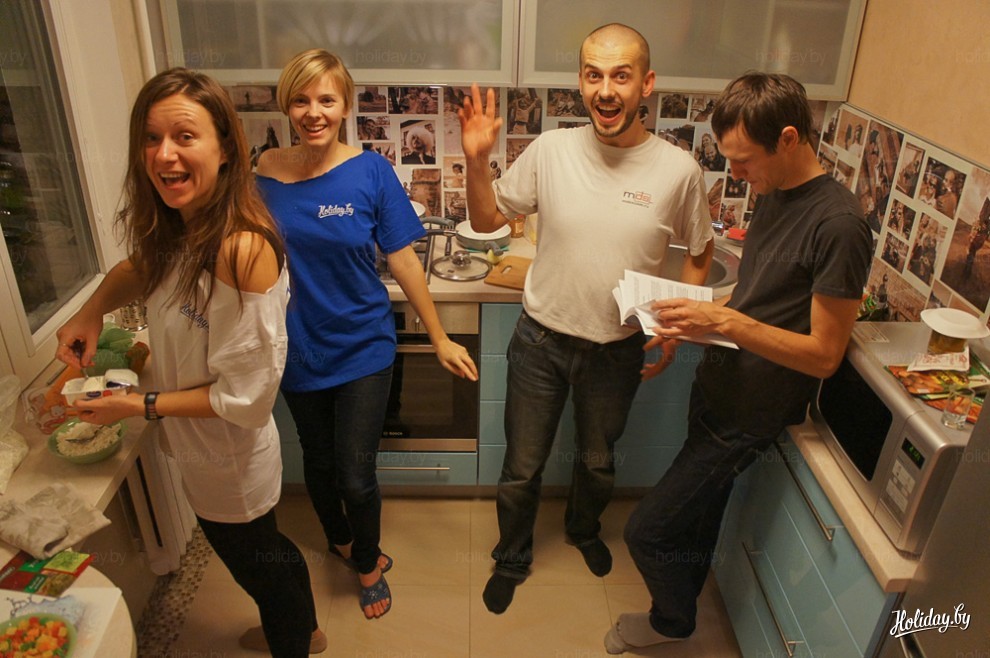 Должны сказать такую вещь: коллективная кулинария - это очень весело. Особенно если люди хорошие собираются и рецепты интересные находятся. Если настоящая белорусская кухня не идет в рестораны, тогда к ней придем мы! А получилось у нас все очень красиво...