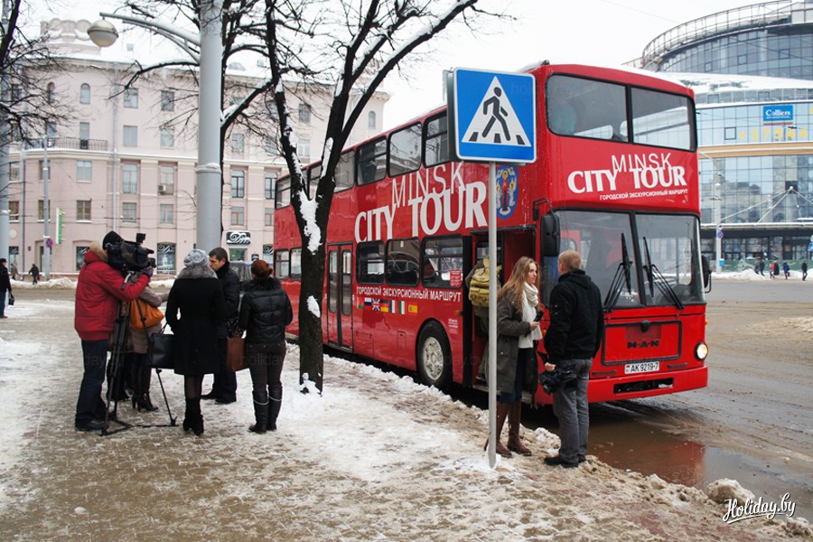 О том, что в скором времени по Минску будет курсировать двухэтажный экскурсионный автобус, было известно ещё летом. Правда, первую экскурсию ждали ещё к концу августа. Но лучше поздно, чем никогда! Тем более, что перед Новым годом в белорусскую столицу традиционно приезжает много туристов. Так что автобус City tour, как говорится, и к месту и ко времени.