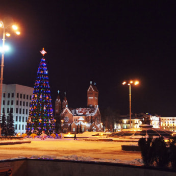 Обойти весь Минск пешком при таком морозе мы не рискнули, поэтому решили воспользоваться услугами турфирмы, предлагающей обзорную экскурсию по вечернему Минску даже при таком холоде! В результате мы совместили приятное с полезным: освежили свои знания о достопримечательностях Минска и полюбовались вечерним городом.