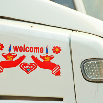 В силу специфики трафика защитная символика, символы счастья и удачи, очевидная необходимость. Поди выкатись на дорогу без свастики на заднем стекле. Или слон наедет, или с рикшей лоб-в-лоб встретишься. А так - всё под контролем!