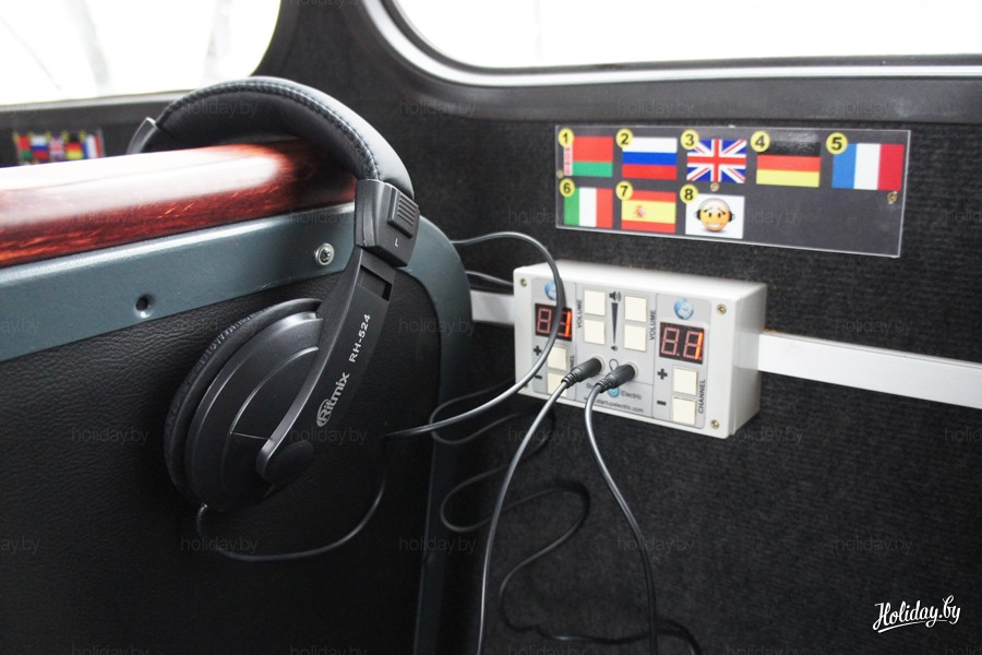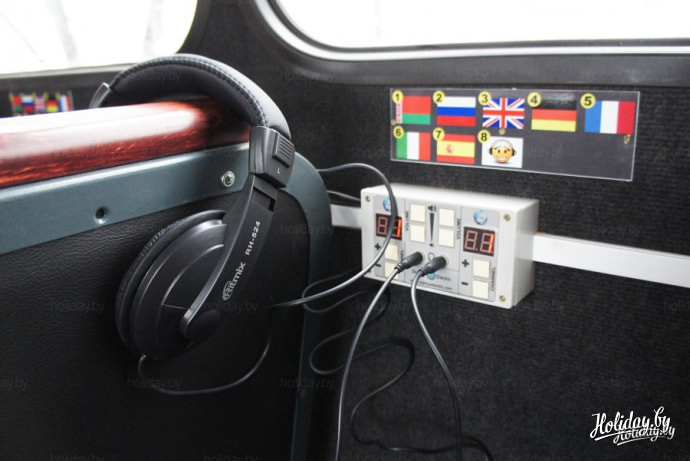 - Наличие наушников и возможность выбора языка. Сейчас можно прослушать экскурсию на белорусском, русском, английском, немецком, французском, испанском и итальянском языках. Предусмотрен также детский аудиоканал с музыкой.