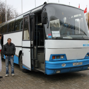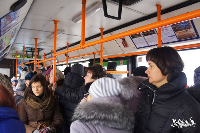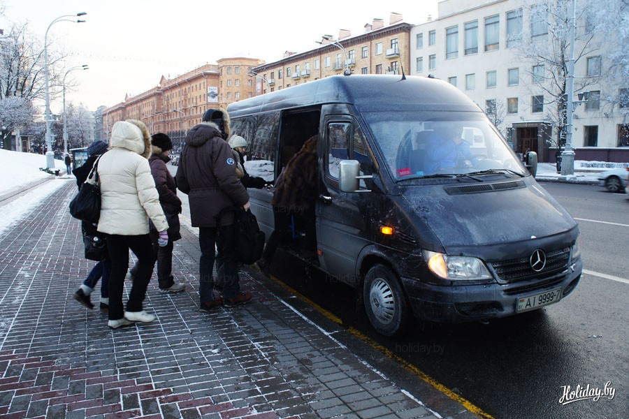 Транспорт. Мини-автобус вместимостью человек 12. Не слишком новый. Моё кресло и вовсе было расшатанным. Первое время боялась упасть с него на повороте) Экскурсия проходила в сильный мороз и если бы не водитель (спасибо ему большое), заботливо расчищающий наши окна вовремя каждой остановки, Минска мы бы так и не увидели.