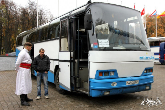 - Автобус. Да, да, в этой экскурсии он стал и плюсом и минусом одновременно.. Главной «фишкой» этой обзорной экскурсии является разрисованный экскурсионный автобус, который Holiday.by заприметил ещё летом. И приобретая билет на эту экскурсию, в первую очередь, мы радовались именно возможности наконец прокатиться на этом «красавце». И представьте выражения наших лиц, когда вместо него приехал просто БЕЛЫЙ автобус…;