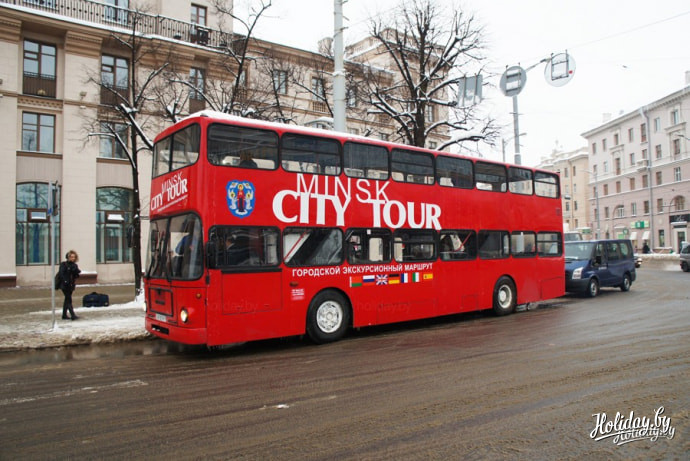 | Minsk City Tour | по телефону или в офисе турфирмы, в информационно-туристском центре «Минск» | 90,000 бел.руб (10,5$) | 11.00, 13.30, 16.00 и 18.30, от железнодорожного вокзала | 2 часа | двухэтажный экскурсионнный автобус | аудиогид |