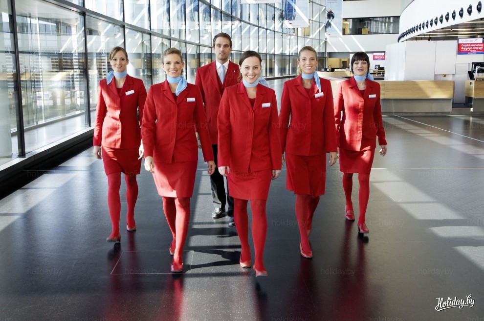 У австрийских бортпроводниц красные даже колготы
