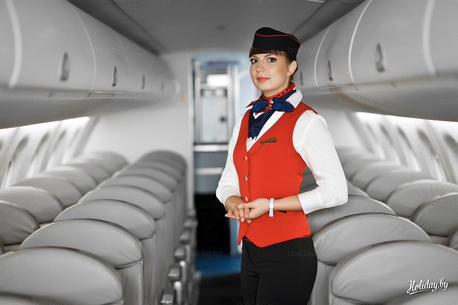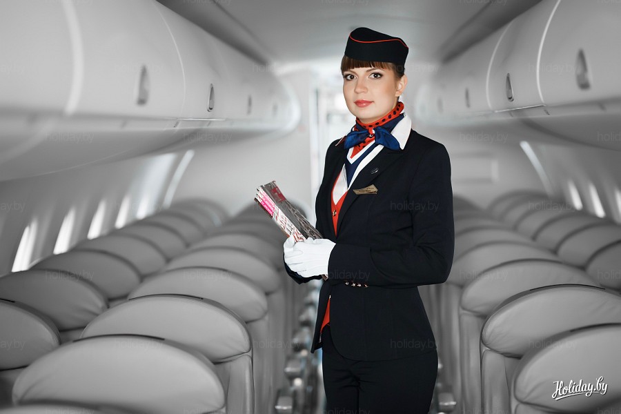 Бортпроводники нашей родной авиакомпании "Белавиа" в новой форме, летний вариант