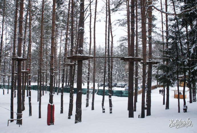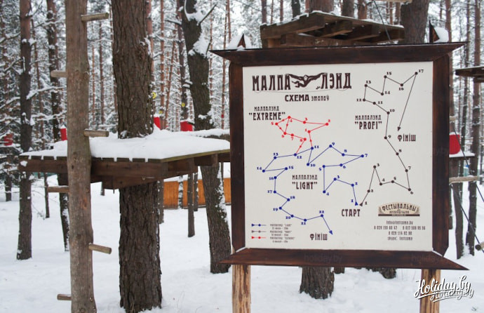 Конечно, главная изюминка клуба – это адреналин-парк «Малпалэнд». Это настоящий аттракцион, предлагающий три необычные полосы препятствий разного уровня сложности на высоте до 7ми метров над землей!
