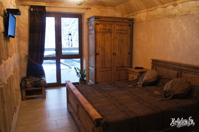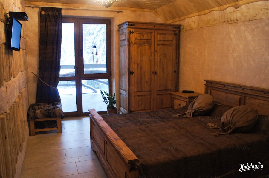 Двухэтажный деревянный дом прямо посреди леса со всеми удобствами, просторной террасой, баней прямо внутри дома вмещает 8 человек. Цена, кстати, приемлемая – арендовать дом в выходные дни можно за 280$ за сутки и за 180$, если это будние дни. Стоимость уже включает завтрак. Довольно интересный вариант для отдыха небольшими компаниями или большой семьей.