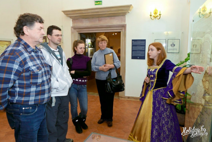 Экскурсию в костюме княгини для семьи Войтовичей провела младший научный сотрудник музея Наталья Пивоваревич.
