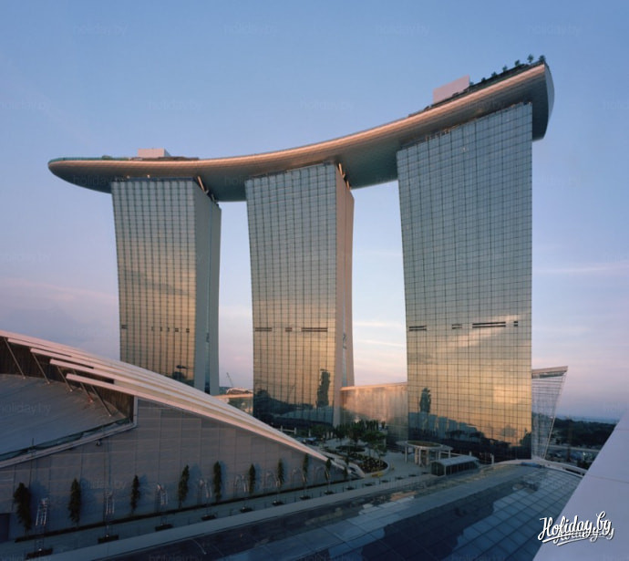 С июня 2010 года она превратилась в реальность – в самом центре Сингапура начал работать уникальный отель под названием Marina Bay Sands. Прославился он благодаря причудливому архитектурному проекту – три 200-метровые башни «держат» трехпалубную «гондолу» под названием «Небесный парк». Ее размеры такие, что на ней свободно могут поместиться четыре огромных Боинга 747 или три футбольных поля. В день она может вместить 4 тысячи человек.